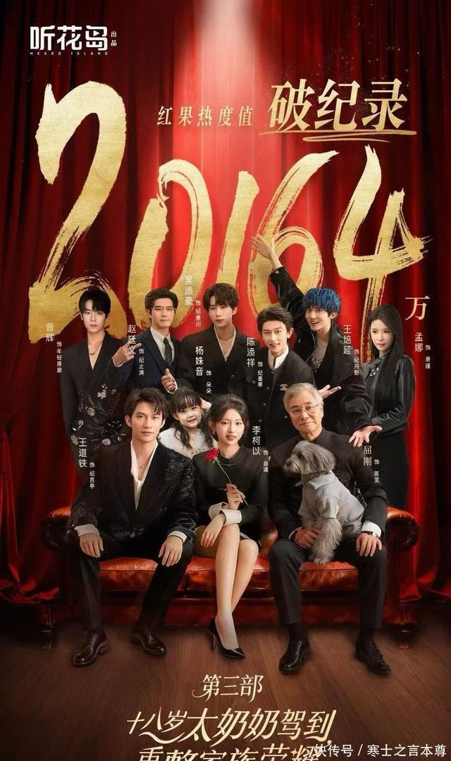 二、红果短剧《十八岁太奶奶驾到,重整家族荣耀3》 李柯以、屈刚、赵廷义、王道铁、陈添祥、吴添豪、王培延、曾辉、孟娜领衔主演 相较于前两部,《十八岁太奶奶驾到》第三部最直观的感受就是太奶奶依旧能力强悍,从制伏失控跑车、一掌拍飞老钱,到带重孙搞科研,手撕遗产抢夺者,国际法庭沉着应对,太奶奶里的亲情线、成长线、事业线都格外扎实每个角色都有他们的光芒,每集都在高能反转!什么恋爱脑、小三小四,在家族荣耀面前都是浮云! 2025年10月26日开播,首日红果站内热度值突破2.01亿,次日飙升至20164万,创红果平台纪录,全网有效播放量超20亿,稳居红果热播榜、新剧榜、热搜榜三榜第一。